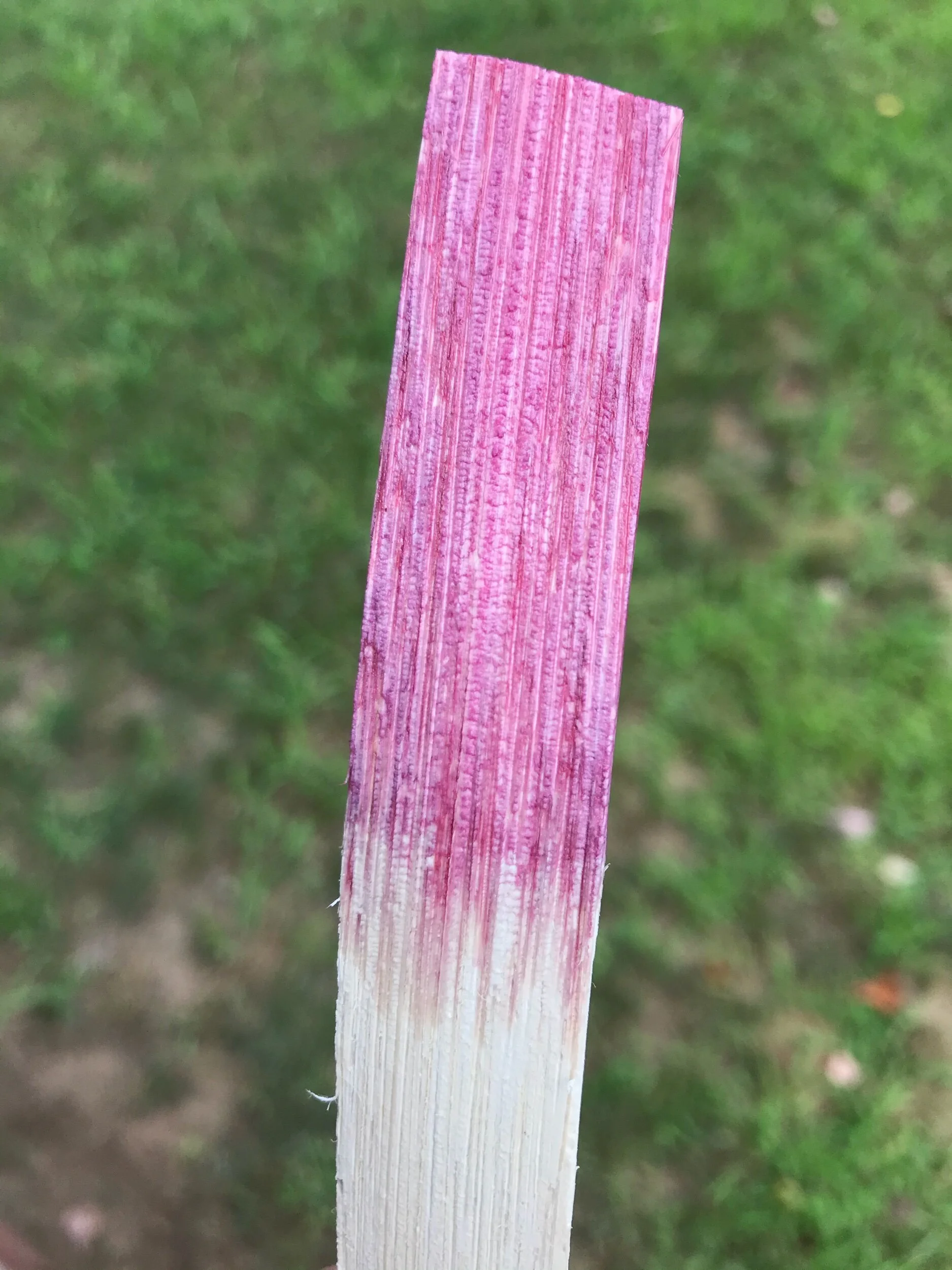 It took much longer than I anticipated, I let the reed soak in the dye bath for about three hours!